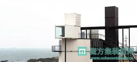在东釜山旅游园区中,设计师利用15只二手集装箱建造了一个独特的度假屋,让游客体验到当地的自然环境和美丽海景。该项目为4-5层建筑,尽管把集装箱无序地堆叠,仍能给人一种简约时尚的视觉冲击感。