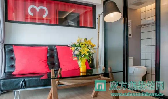 SleepBox Hotel的房间分为4种不同的类型,每间房子的外面都有大大的房号。室内的空间较为宽敞包括有双人床,沙发,独有的洗手间,24小时不间断的免费WIFI。