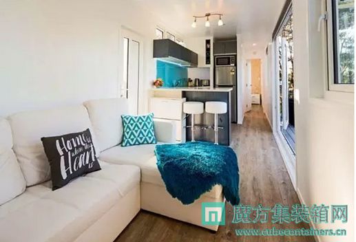 起居室的小门通向20尺的集装箱,20尺的集装箱用作Kelly的私人工作室,工作台、储物架以及小沙发等家具摆放在此,其实它不仅可以做工作室,还可以变成简约的休息室或者客房,功能十分强大。