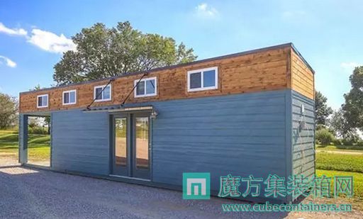 单一的集装箱也能打造舒适温馨的房屋,这个40尺的集装箱房屋以其独特的设计脱颖而出,蓝色以及原木色的木板覆盖在集装箱表面,与周围环境完美融合,更为美观大方。房子总建筑面积为312平方英尺(28平方米),由于使用的需要,他们在顶部增加了约30英寸(76.2CM)的高度,加建了额外的阁楼空间,还切除了一部分箱体作为门廊使用,小面积打造大空间,室内外空间兼备。
